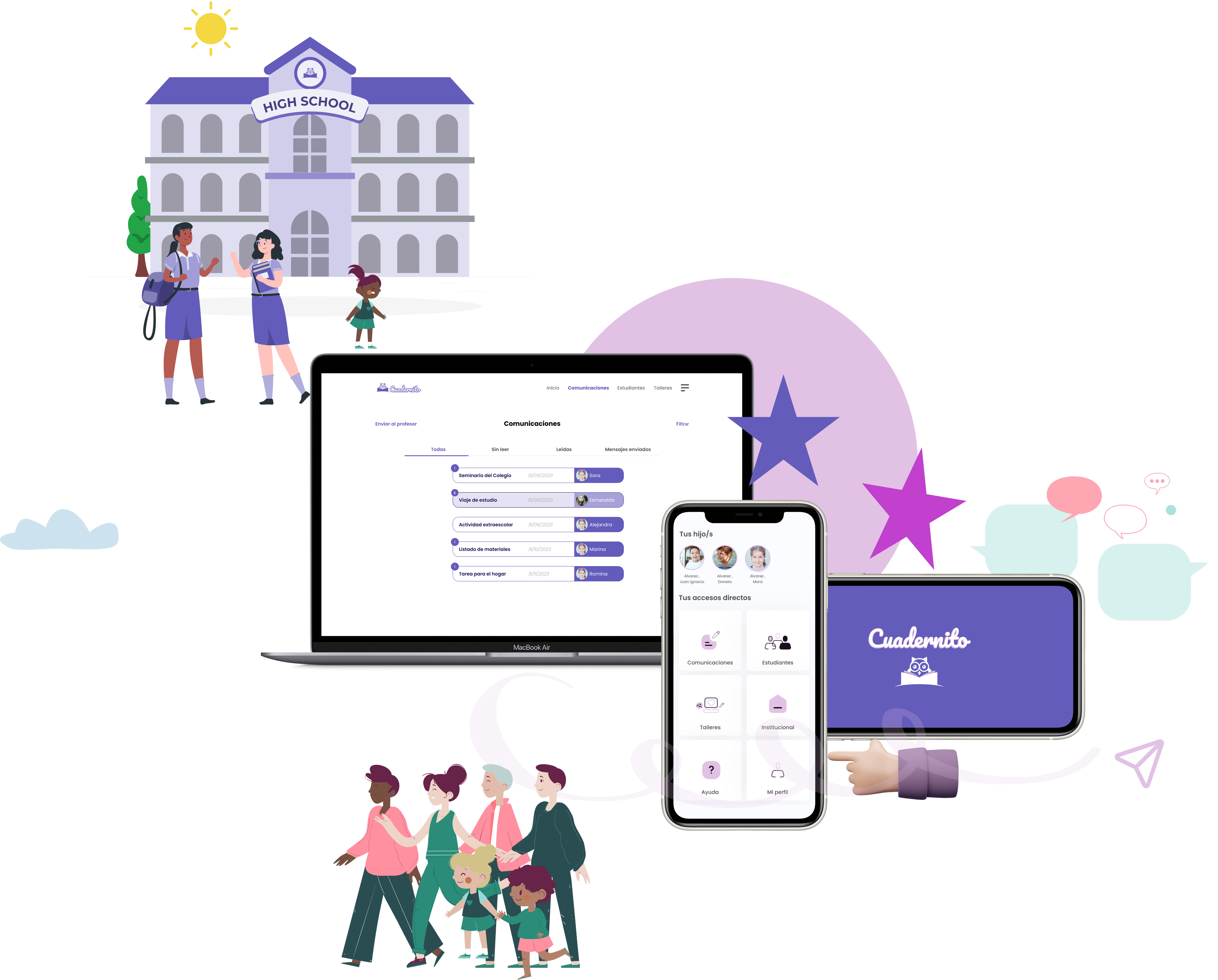 Cuadernito mejora la comunicación entre la escuela y el hogar de los niños a través del envío de mensajes grupales e individuales.